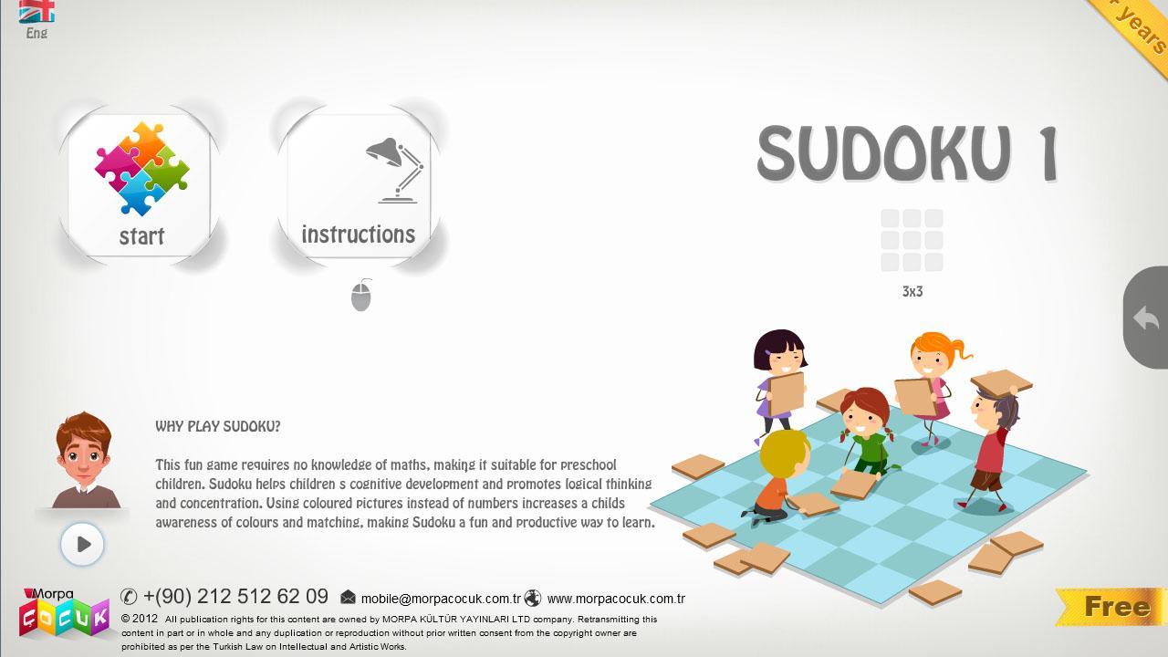 3+ years, 4+ years, 5+ age children can play, according to age levels of 3x3, 4x4 and 6x6 pieces, with many different rich visual combinations, with two different language options, including Turkish and English, has a fun logic game.